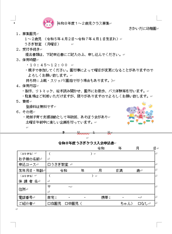 | うさぎ教室1月〜3月(親子教室) | ||